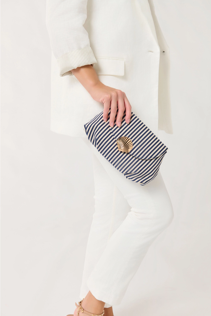 Add a fresh coastal touch to your accessories collection with the Kaia Blue Stripe Clutch, a versatile striped clutch purse designed for both daytime outings and evening events. Featuring a classic blue and white stripe pattern with elegant gold hardware, this bag brings effortless coastal style and resort-inspired charm to any outfit.