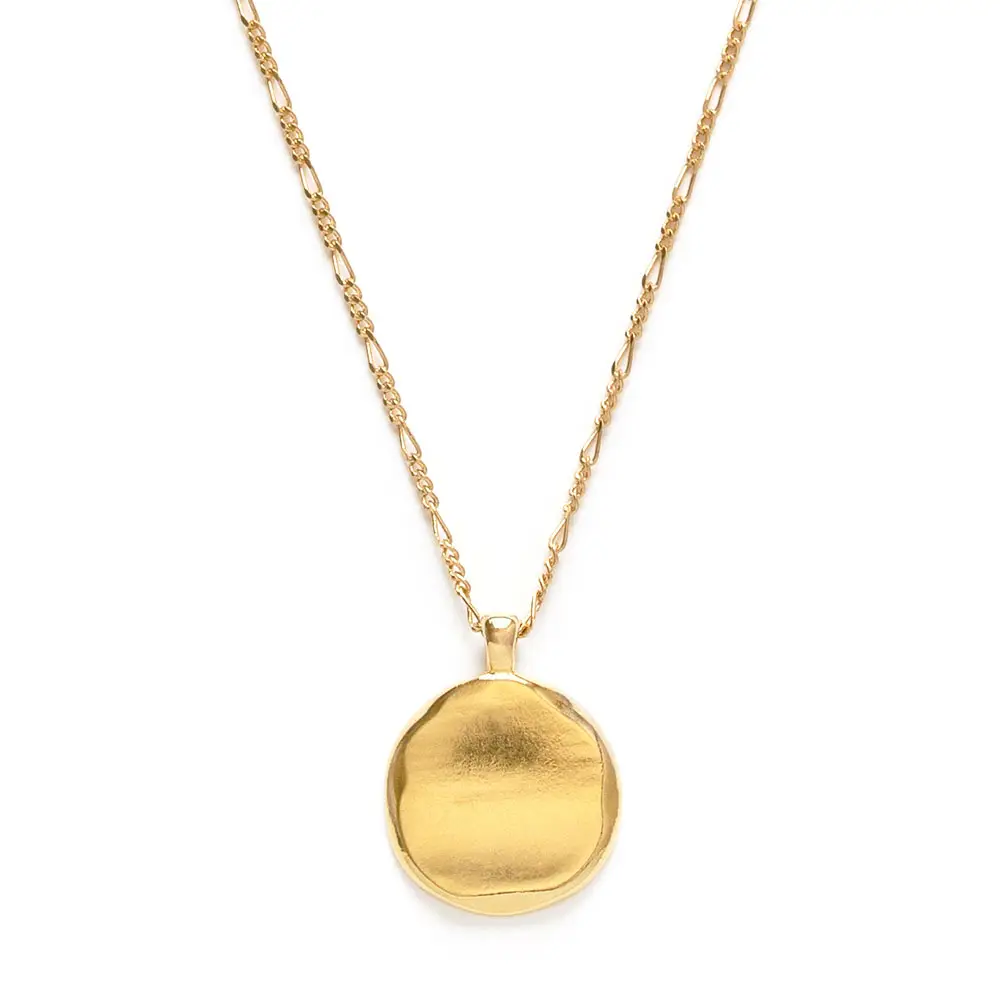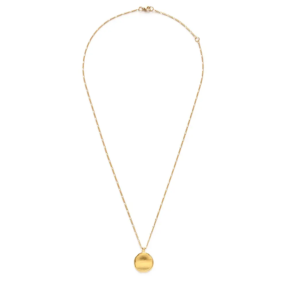 This simple, modern pendant necklace was cast with a handmade mold. It is a great stacking necklace. Made of 14k gold plated brass + coated to resist tarnish. Designed and assembled in our Sonoma California studio.