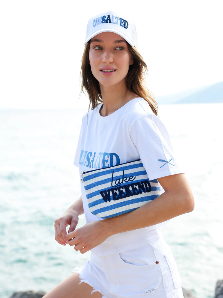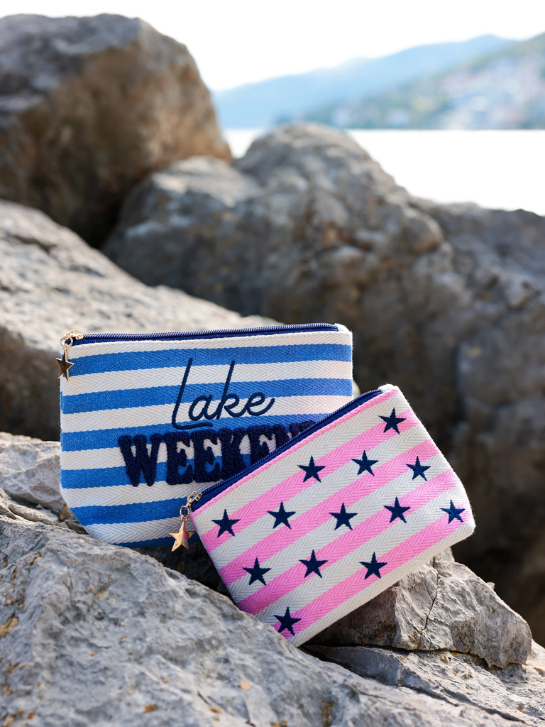 The Morgan “Lake Weekend” Large Zip Pouch is a stylish and functional accessory designed to keep your essentials organized on the go. Perfectly sized for travel, weekends away, or everyday use, this pouch blends playful charm with practical design. Whether you’re heading to the lake or running errands, it adds a fun, feel-good touch to any outing.