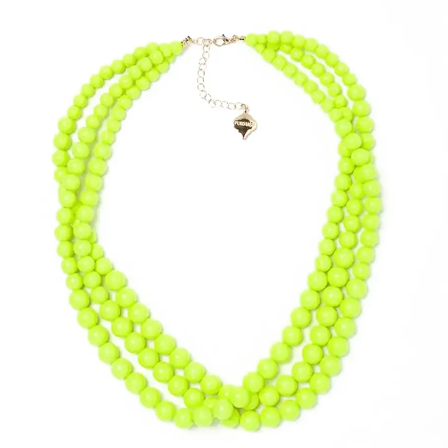 The Winnie Necklace delivers an effortlessly layered look with three strands of glossy beads in a bold neon yellow. Bright, playful, and lightweight, this statement piece instantly adds energy to everything from a simple tee to a summer dress.