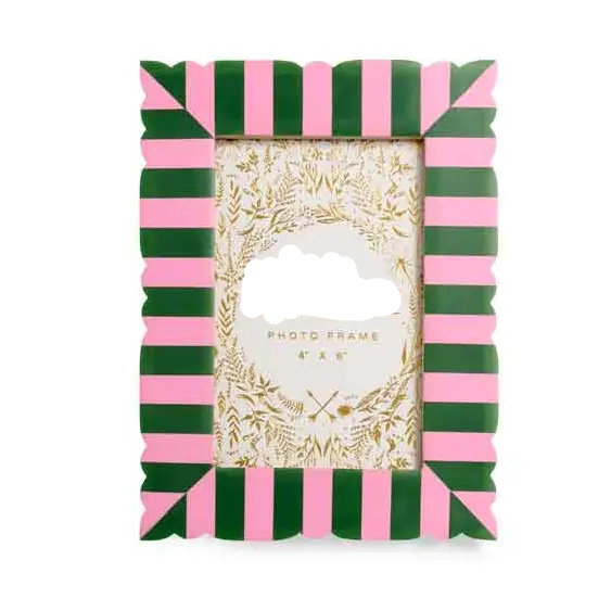 Add a pop of playful charm to your space with the Viva 4" x 6" Cut Edge Picture Frame. Featuring bold, candy-colored stripes and a wavy edge detail, this frame is anything but ordinary. Whether you choose the vibrant red and pink combo or a fun mix of green and blue, each one delivers a dose of cheerful personality. Designed to stand out, this frame is a celebration of color and whimsy for your favorite memories.