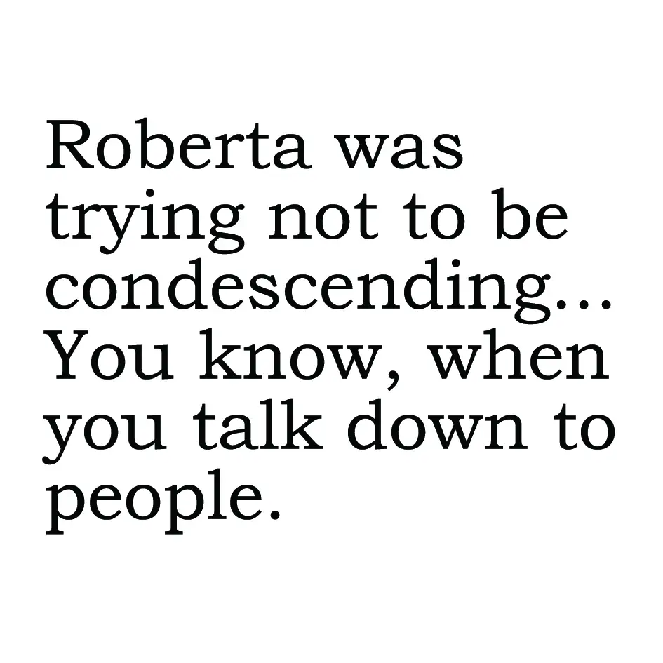 Roberta was trying not to be condescending...you know, when you talk down to people.