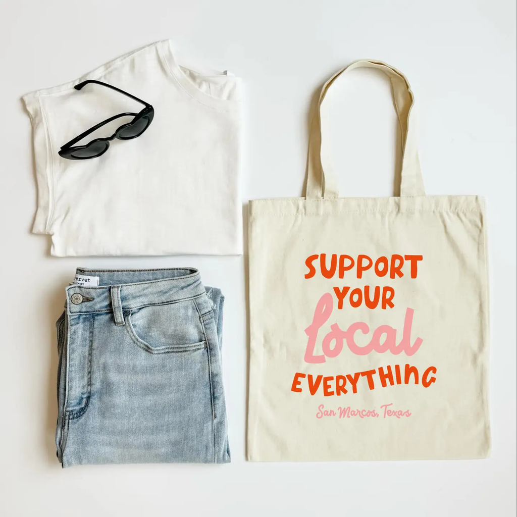 Celebrate community pride with our Support Your Local Everything Tote Bag, exclusively featuring Farmington, CT. Made from sturdy cotton canvas, this bestselling tote is lightweight yet durable—perfect for carrying groceries, books, market finds, or everyday essentials. With its bold, playful design, it’s a favorite for anyone who believes in shopping small and supporting local businesses.