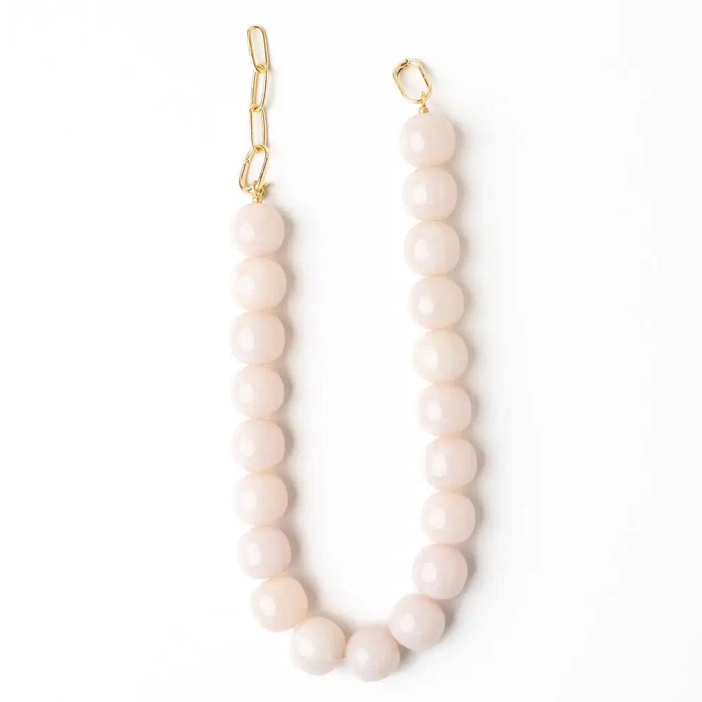 Twiggy would totally approve. This white resin bead necklace channels bold ’60s style with a modern twist. Designed with chunky resin beads and clean, graphic appeal, it’s the kind of statement piece that instantly elevates even the simplest outfit. Wear it solo for mod impact, layer it with your favorite bracelets, or clip it onto a bag for a fashion-forward moment.
